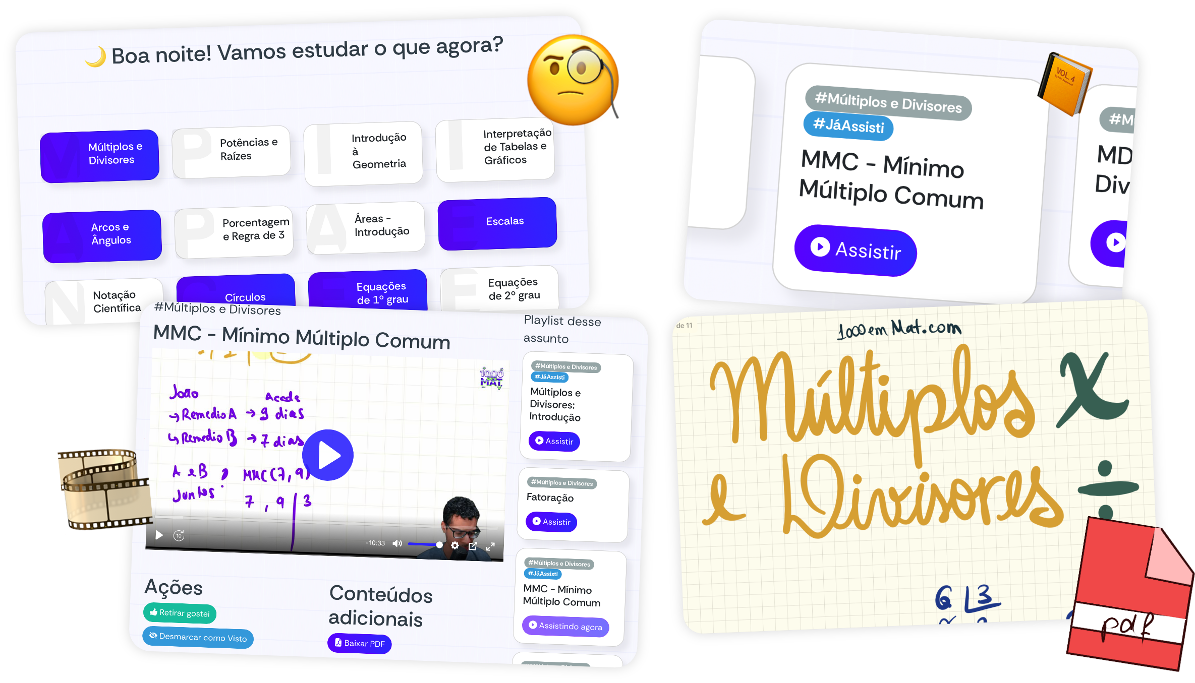 O 1000 em Mat te ajuda a passar em qualquer curso do ENEM, com recursos abrangentes de estudo, desde um espaço para análise exclusiva dos seus pontos fracos até questões, simulados e um fórum tira dúvidas. Não podemos garantir que você seja aprovado, mas definitivamente te garantimos uma experiência personalizada e que organiza todos os seus estudos para você não perder tempo e preencher todas as lacunas do seu aprendizado. Afinal, são 45 questões só de Matemática para toda e qualquer área do ENEM: o desafio é grande, e estamos aqui para te ajudar.